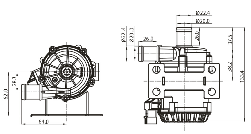 | 額定電壓 | 使用電壓范圍 | 額定電流 | 最大揚程 | 最大流量 | 額定功率 | 最大噪音 |