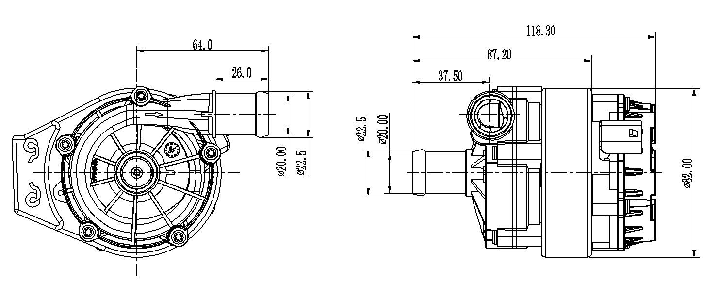 | 額定電壓 | 使用電壓范圍 | 額定電流 | 最大揚程 | 最大流量 | 額定功率 | 最大噪音 |